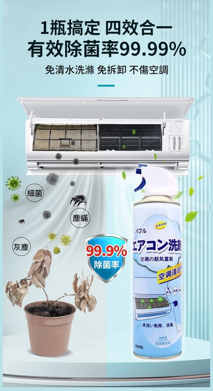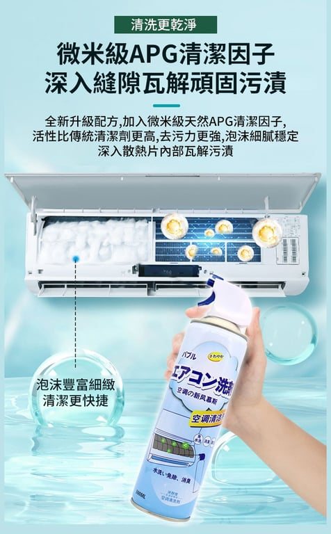 半小時前【清新夏日,從清潔開始】免拆洗空調冷氣機清潔劑深層潔淨,無需折卸空调快速分解塵垢異味 - 【買二送三】5入組-NT$1198