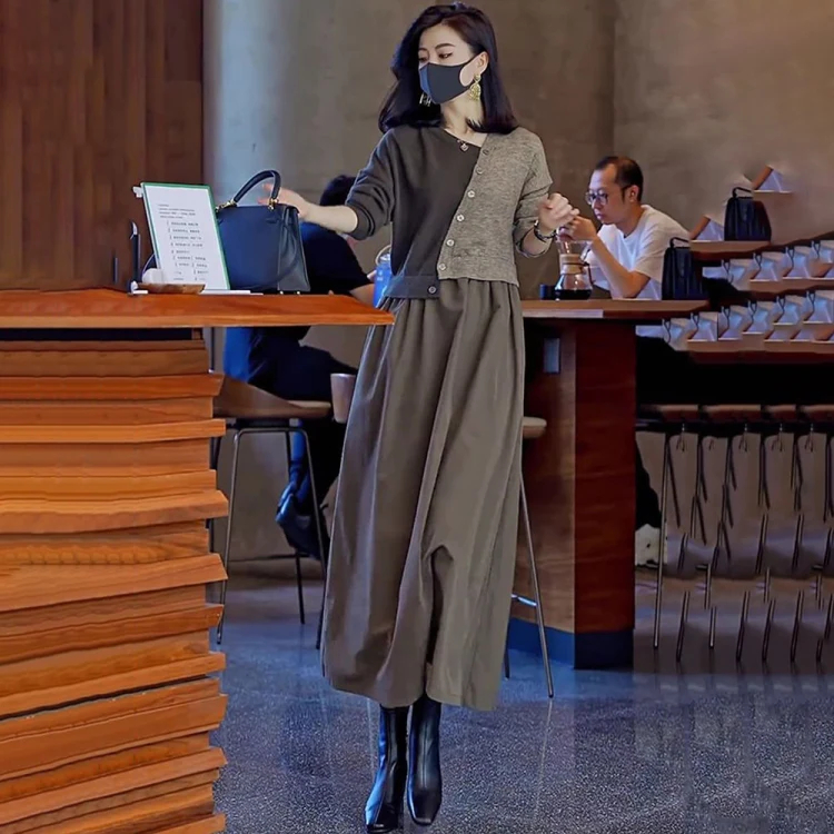 25分鐘前【限時活動 貨到付款】針織假兩件連衣裙,上身減齡顯氣質! - 一入組優惠價!NT1390