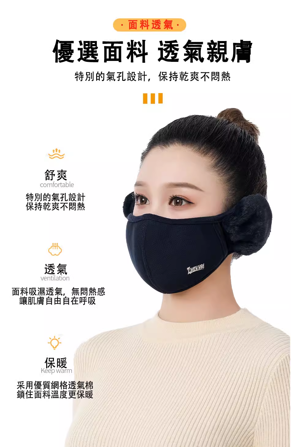 4分鐘前日本進口!台灣本地發貨!【男女同款】秋冬季高颜值纯棉加绒透气防寒防风护耳二合一面罩 - 70%的人選擇【任選五組】5入組NT$1180(均價236/組)