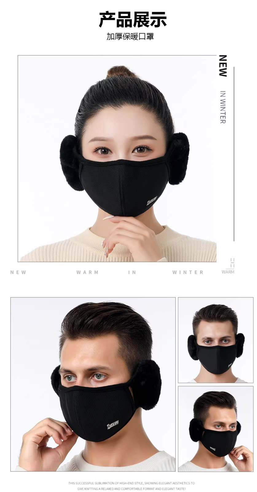 2分鐘前日本進口!台灣本地發貨!【男女同款】秋冬季高颜值纯棉加绒透气防寒防风护耳二合一面罩 - 體驗裝【買一送二】3入組NT$940(均價313/組)